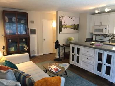 The newly upgraded kitchen & bath include all new cabinets and quartz countertops. New appliances include dishwasher and microwave. There is a tub/shower bathroom with a large separate dressing/powder room. This suite comfortably sleeps 4. There is a Queen bed in the bedroom, as well as a comfortable queen sofa bed with easy an access storage component underneath. This suite is also suitable for longer term guests. For the safety of our other residents, PETS or other animals are not permitted in this small, gated community. This unit can come fully furnished and ready for move in or unfurnished! Call to schedule a showing today