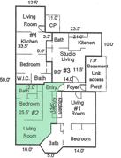 Entryway with shelving and closet. Kitchen has pantry, bedroom with built-in dresser and vanity mirror, gas heater in living room, off street parking may be available at an additional cost. Excellent location!