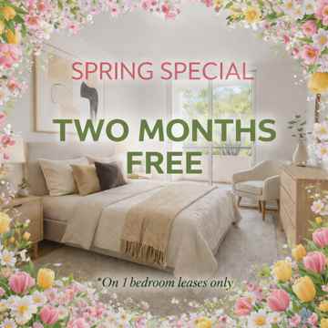 Rent Special available! ** SPRING SPECIAL*** TWO MONTHS FREE (1 bedroom leases only) TWO MONTHS FREE - 1 bedroom leases only *Terms & Conditions apply