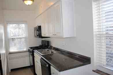 Gorgeous, renovated one bedroom apartment. Eat in kitchen comes equipped with all appliances (gas stove, refrigerator, dishwasher, microwave), new white cabinets, faux granite counter tops, and new ceramic tile floor. Bathroom features built in storage in addition to vanity and medicine cabinet storage. Hardwood floors in living room and bedroom. Closet in living room, bedroom and pantry off of kitchen. New high efficiency A/C units provided. Updated windows throughout apartment, and all have security locks.