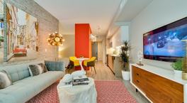 Wren redefines apartment living with unmatched amenities like poolside cabanas, EV-charging stations, and the on-site First Draft Taproom & Kitchen. Choose from stylish pet-friendly studios to spacious three-bedroom apartments, all featuring sleek finishes like quartz countertops, subway tile backsplashes, stacked washer/dryers, and gas stoves. Whether you're unwinding in the rooftop spa, hosting friends on the deck, or strolling to a show at Crypto. com Arena, Wren connects you to it all. With walkable access to the best of LA and seamless commuting on the Streetcar Track, Wren is your launchpad for urban living. Schedule a tour of our downtown LA apartments today.