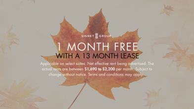 Rent Special available! *Limited Time Offer: Get 1 Month Free with a 13 Month Lease! Net effective rent being advertised. The actual rents are between $1,690 to $,2,200/month. Promotional offer is based on a 13-month lease with 1 month free. Subject to change without notice. Terms and conditions may apply. Schedule a tour to learn more.