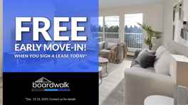 Note: Information posted, including suite availability, security deposits, rental rates and incentives are subject to change without notice or may vary by suite type. Current residents can contact the Customer Service Representative to discuss lease renewal options. Suites and floor plans may not be as shown. Some conditions apply. Rental rates listed are net and include current incentives when applicable. Incentives advertised are for new applicants. Internal transfers are subject to conditions found within the Transfer Agreement.