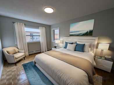 Retreat to the spacious main bedroom, which features large windows that fill the room with natural light. The second bedroom is equally inviting, offering ample space for a home office, guest room, or cozy den, depending on your needs. The modern bathroom, accessible from the main living area, is tastefully updated with high-quality fixtures and a luxurious bathtub. Enjoy the peace of mind that comes with residing in a well-maintained and secure building, complete with underground parking and attentive property management.