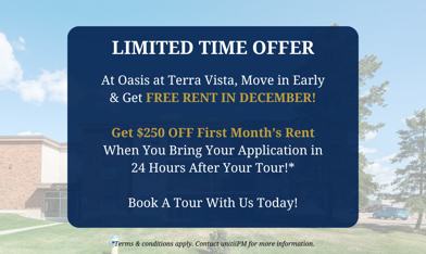 If you’re looking for convenient, family-oriented apartments for rent in Southgate, Oasis at Terra Vista is the perfect place to call home. Contact our site manager today to schedule a tour!