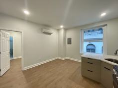 The apartment recently underwent a complete renovation. Walk in to an open living room/kitchen. The kitchen features stainless steel appliances, quartz countertops, and high end cabinets. Spacious bedroom that can easily fit a queen size bed, nightstands, desk, etc. Mini-split HVAC units in the bedroom and living room. Beautifully tiled bathroom/shower with modern finishes. In unit washer/dryer.