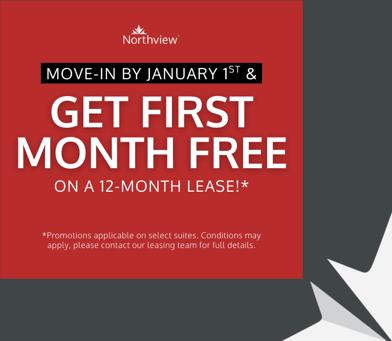 Move-in by January 1st to Get First Month Free on a 12-Month Lease!*