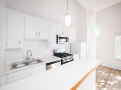Beautifully updated with new granite countertops, white appliances (including new dishwasher, gas stove/oven, and over-the-range microwave), ample cabinet space, and a new light fixture. The breakfast bar overlooking the living area includes a convenient USB outlet-perfect for barstool seating and casual dining.