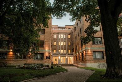 Lovely art deco building situated in a quiet cul-de-sac. 6 stories high with a rooftop deck and gym. Large corriders and entranceways. Elevator and laundry room. Pet friendly building. There is indoor parking upon availability. Westmount adjacent. Close to 66 bus and a few minutes walk to Villa Maria Metro.