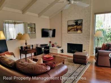 Seasonal Rental in Canyon Sands - Canyon Sands in Palm Springs are very popular place to spend the winter. This condo is a single story unit with an attached 2 car garage. Property has a private patio that includes a gas BBQ. In the living room and dining areas you will find walls of windows that provide plenty of light and view of the patio, and on those chilly winter evenings you can enjoy the fireplace in the living room. Owner has added a new flat screen TV in living room. Both the Master bedroom and Second bedroom have queen size beds. This Seasonal Rental also comes with a full size washer & dryer, plus the property is close to one of the community pool & spa areas. Canyon Sands is only minutes away from Downtown Palm Springs or Tahquitz Creek Public Golf Course. Contact leasing office for availability.