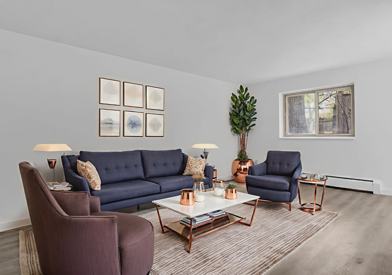 Photos are for illustrative purposes only; layouts may vary from one apartment to another. Only ground-level and basement units remain available.
