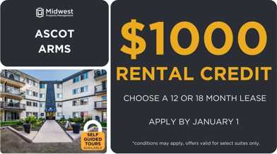 $1000 Move-In Credit. Apply by January 1. Offer Valid on Select Units.
