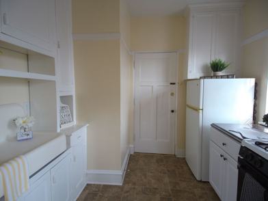 Apartment interiors offer a vintage charm with updated kitchens including a dining area with built in china cabinets, kitchen with a gas range and refrigerator, a huge living room and spacious bedrooms. Each apartment has several windows to brighten up your living space, hardwood or carpeted floors, ample closet space and ceiling fans.