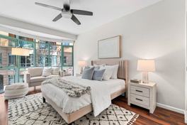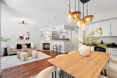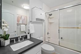 Nestled in a serene courtyard, this Paseo Plaza townhouse-style condo provides modern comfort in a peaceful gated community. Inside, enjoy open-concept living and dining, laminate hardwood flooring, and stylish floor-to-ceiling windows. The bright living room features a gas fireplace, the dining area includes a built-in bar and a beverage cooler-perfect for effortless entertaining. Modern light fixtures add a chic and contemporary touch. The kitchen offers white cabinetry, a cozy breakfast nook, and an induction cook-top. A convenient powder bath with extra storage, laundry and a coat closet completes the first level. Upstairs, retreat to two en-suite bedrooms, with full baths. The primary suite boasts a walk-in closet, stylish windows, double vanity sinks, large bathtub, and separate shower. Enjoy modern convenience with motorized shades and a smart thermostat. Park securely in the underground garage with two tandem parking spaces. Enjoy resort-style amenities, including a pool, spa, sauna, fitness center, clubhouse, and beautifully landscaped courtyards. Just a short walk to downtown San Jose's vibrant San Pedro Square, the pedestrian-friendly Paseo de San Antonio, restaurants, theatres, nightlife, and Silicon Valley tech employers.