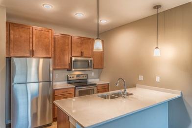 Each unit features pendant lighting, quartz countertops, stainless steel appliances, wood-inspired flooring and an in-home washer and dryer. You'll love the modern, hand-picked finishes. Plus, we're pet-friendly!