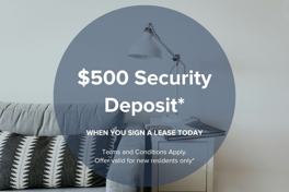 Rent Special available! $500 Security Deposit Move in this month and you may qualify for our incentive.