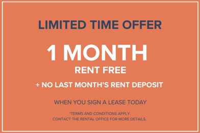 Rent Special available! 1 Month Free + No Last Month's Deposit