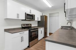 We offer spacious one-bedroom, two-bedroom, and three-bedroom apartments, all with well-equipped kitchens and ample storage space. All suites also feature large balconies with patio doors.