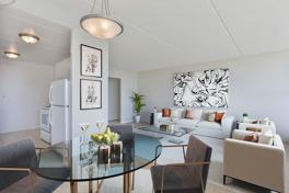 - Floor to ceiling windows in living areas.