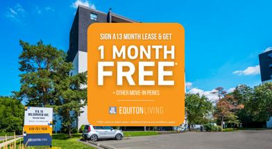 Rent Special available! 1 MONTH FREE RENT on a 13-month lease, OR a $200 monthly utility credit on a 13-month lease, OR a gift card from everythingcard.ca.* *Offer valid on select suites. Value must not exceed 1 month’s rent value. Additional terms and conditions may apply.