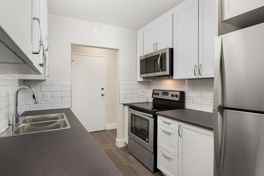 Residents enjoy spacious bachelor, 1 bedroom, and 2 bedroom suite designs with updated laminate flooring in the living rooms and bedrooms. Kitchens are open-concept and offer stone-like ceramic tile, elegant white cabinetry, self-closing drawers, and four stainless-steel appliances. Enjoy private balconies with chic glass panels in select suites.