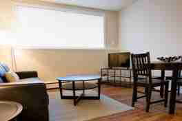 Parkland Apartments is a small apartment complex featuring renovated suites with laminate flooring, in-building laundry facilities and energized surface parking. Suites on the second and third floors have balconies. Some suites in Parkland Apartments feature cathedral ceilings. Prices may vary. Furnished suites include linens and fully equipped kitchens and are available for an additional $100 per month.