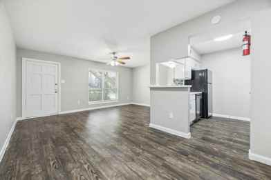 Large 1-1 with laminate floors throughout, central air/heat, ceiling fans, large walk in closet and laundry on site. PRIVATE PATIO!!