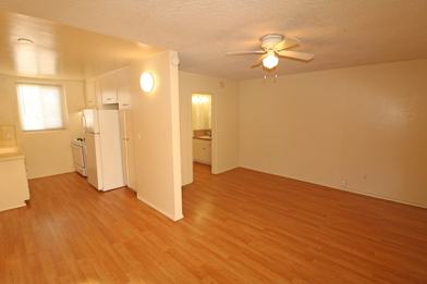 Don't miss out on this 1st floor studio! Beautiful landscape inside gated courtyard with water fountain. Located a block away from Park Blvd and great restaurants! Laminate flooring, separate kitchen, gas stove, and refrigerator. Separate bathroom with closet for storage. Water, sewer, trash included. First come, first serve carport parking.