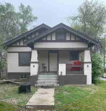 This cool house is just a couple blocks from campus. The main floor has a HUGE living room with beautiful original custom woodwork coffered ceilings. There is two large bedrooms on the main floor and a full bathroom with four bedrooms in the basement and a 3/4 bathroom. Rent this whole house and you get a kitchen and living room on both levels....BONUS! You also get off street parking a detached garage and a fully fenced in back yard with a fire pit. .