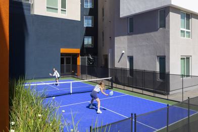 The Q Playa 5901 Center Dr, Los Angeles, CA is a rental apartment building with 25 floorplans available. It is located in the Westchester-Playa Del Rey neighborhood of Los Angeles. It has apartment amenities including high ceilings, dishwasher, in-unit laundry, walk-in closets, air conditioning, and balcony. It has building amenities including package service, residents lounge, roof deck, garage parking, controlled access, swimming pool, fitness center, ev charging, business center, concierge service, storage, and outdoor space. Cats and dogs are allowed, making it a pet-friendly building.