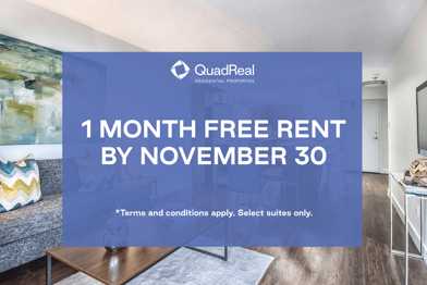 Rent Special available! One Month Free on Select Suites! Receive one month free on select suites for a limited time on a 12-month lease. Pricing and incentives subject to change. Terms and conditions apply.