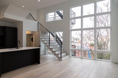 The ultimate in high-end city living. Step into your new home and be welcomed by abundant natural light pouring through a dramatic floor-to-ceiling glass wall. This spacious two-level residence offers a wide-open layout and soaring vaulted ceilings that create a bright, airy atmosphere.