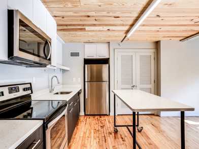 The residential apartment homes at the Fox Building include Studio, 1 & 2 bedroom Hampden apartments and feature polished concrete floors, modern kitchens and baths, washer/dryers, high ceilings with ceiling fans, and oversized windows. The Fox Building also features several loft apartments, as well as a number of live-work spaces, designed specifically for a working artist or artisan.