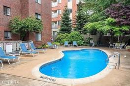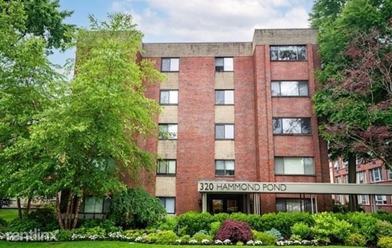 Brookline Chestnut Hill 2 bed, 2 bath with 1,100 sq feet of living space & central air! This property features an open layout with a private balcony. This unit has hardwood throughout, lots of natural light and more. Professionally managed and also has one assigned covered parking space and 1 assigned storage locker. Additional parking can be purchased. Shared amenities are as follows; laundry in basement, fitness center, outdoor pool and barbecuing patio. Easy highway access, MBTA GL-D, bus 60 and hospital shuttle! Heath/Baker elementary school buffer and lots of local restaurants, shops, a movie theater, Wegmans & Star Supermarkets.