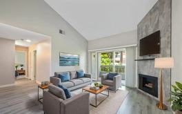 Live your best life in this top-floor, 2 bed-2 bath move in ready Mission Valley condo, just mins from Snapdragon Stadium, SDSU, USD, Fashion & Mission Valley Malls, Old Town, downtown, the beach & more! Enjoy vaulted ceilings in the living room w/ a cozy fireplace, luxury vinyl flooring & spacious primary suite w/ ensuite bath & walk-in closet. The kitchen is upgraded w/ Corian Counters, Bosch & Samsung appliances. Additional features: dual-pane windows, in-unit washer/dryer hookups, an assigned covered parking space with storage, plus additional first-come, first-served parking. Amenities include a resort-style pool, spa, sauna, gym, & racquetball/tennis courts. VA & FHA Approved!