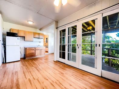 Adorable studio with 258 square feet of living space with a huge, covered lanai extends your living area to the beautiful outdoors. Gorgeous Diamond Head and ocean views you must see to appreciate. Driveway parking included, window A/C, and washer/dryer shared with main house.