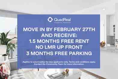 Rent Special available! 3 Months Free Parking Applies to select suites for new applicants only. Terms and conditions apply. Contact the Community Team for more information. &