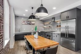You can also cook dinner and host your friends and family in one of two fully equipped community kitchens, use one of the large workspaces, or relax in the lounge. Other building amenities include a shared patio with grill and fire pit, multi-use room, community-wide wifi, laundry rooms on every floor, controlled access and building-wide security cameras, package lockers, and bike storage.