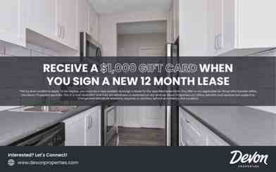 Receive a $1000 GIFT CARD When You Sign a New 12 Month Lease