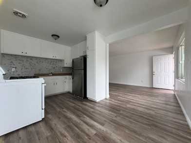 Get away from the traffic in this private duplex which sits at the back of the property adjacent to the riverbed. This wonderful home's kitchen offers great cabinet space and comes equipped with a gas range/oven and fridge. You will appreciate the new plank flooring and neutral paint color throughout. The full bathroom has a single sink and window which offers great ventilation! The bedrooms both accommodate queen size beds comfortably.