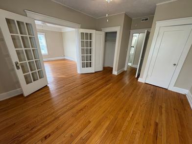 Elegant French doors that gracefully connect the bedroom to the living room, creating a seamless flow of natural light and an airy, sophisticated ambiance.