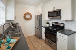 Remodeled 1 Bedroom 1 Bathroom apartment comes with: Shaker white cabinets in the kitchen and bathrooms, grey quartz counters, tile floors in the bathroom, stylish wood laminate floors in the living room, kitchen & bedrooms, new tub and wall tile, Recessed lighting, STAINLESS STEEL APPLIANCES (dishwasher, range, microwave & refrigerator), fixtures and SMOOTH CEILINGS throughout!