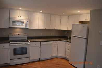 Completely remodeled easy to maintain, energy efficient, well lit, 2BR, 1.5 bath town-home with private fenced patio, 6' slider,in-unit laundry, microwave, washer dryer, upscale fixtures, LED lighting and hardwood look laminate floors and parking for 2 cars. Beautiful kitchen with Microwave, Dishwasher, pull down faucet, wood cabinets and a 36" lazy susan in the corner and drawer cabinet along with usual stove, oven and refrigerator. 6' glass slider to a large 250 SF, fenced in private paver patio. 1/2 bath, with pedestal sink, recessed Kohler medicine cabinet and comfort height Kohler toilet on the first floor. First floor In unit laundry - Washer and dryer with 5' of convenience cabinets over them. 2 beautiful rooms with a tiled bath with recessed Kohler medicine cabinet upstairs. Brand new easy to maintain luxury laminate floor throughout. LED lights throughout. Tandem parking for 2 cars, just outside the unit. Attached storage available. Rent includes heat, hot water, water, electricity (without AC use) trash removal, landscape maintenance. Up to 2 window ACs can be used at additional cost. (Pictures are from similar unit and provided for illustration.)