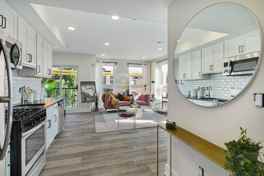 ~ An open layout with hardwood floors and stainless steel appliances, including a dishwasher.