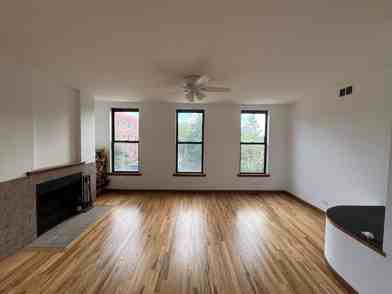 This massive East Pilsen 1 Bedroom apartment has a large bedroom and newly refinished hardwood throughout. It has a functioning wood burning fire place and abundant south and east facing natural light.