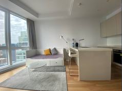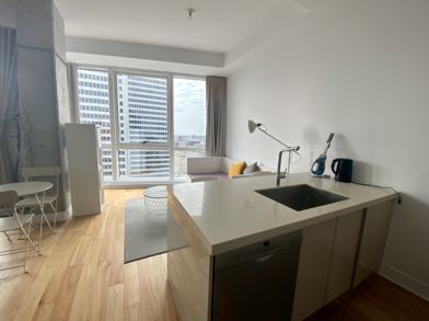 This gorgeous FULLY FURNISHED unit is on the 36th floor on the project, 690 sqft, south-facing, 9 ft ceiling + glass walls, super-bright even in cloudy days, high-end interior finishing, and private balcony with splendid views of Saint Lawrence River and Place Ville-Marie. Perfect for professionals or young couples who are looking for luxury and convenience.