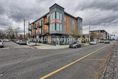 MOVE IN SPECIAL Free Month with 13 Month Lease and 700+ FICA. Pictures and Video of a similar unit...#201... 1 bedroom, 1 bathroom apartment with washer and dryer in the unit. Secure building on North Interstate Avenue and North Simpson Street. This building is located conveniently to PCC Cascade, U of Portland, Peninsula Park, McMenamins Kennedy School and Legacy Emanuel Hospital. The unit has a full kitchen with stove/oven, microwave, dishwasher and refrigerator. The main room is very spacious and bright with a window and mini split. There is a door that leads to the balcony. The bathroom is large with a vanity for storage, shower and the stacked washer and dryer. This unit has a spacious bedroom with closet. Street parking. Tenant pays all utilities. No Pets Please. Pictures and Video of a similar unit. View our VIDEO tour on our website at www bluekeypm com