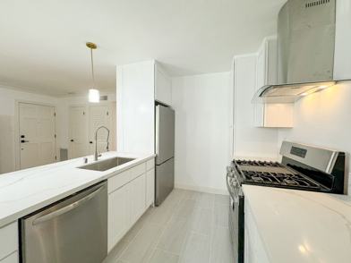 This home features a high-end stacked washer and dryer in-unit for added convenience. The fully remodeled bathroom includes a soaking tub and rainfall shower for ultimate relaxation.