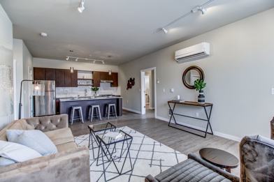 At Orenco Oregon, you will enjoy a hard-to-find spacious two-bedroom apartment home with built-in AIR CONDITIONING. Our designer kitchens feature modern European-style cabinetry, sleek quartz slab countertops, stainless steel appliances and an extra-large single basin sink with an adjustable faucet sprayer. Your unit will also feature a built-in microwave, a full-size washer/dryer, and garbage disposal.