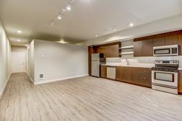 Hard flooring throughout unit, carpet in bedroom
